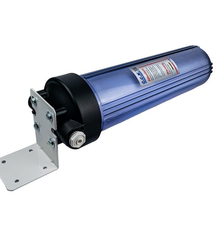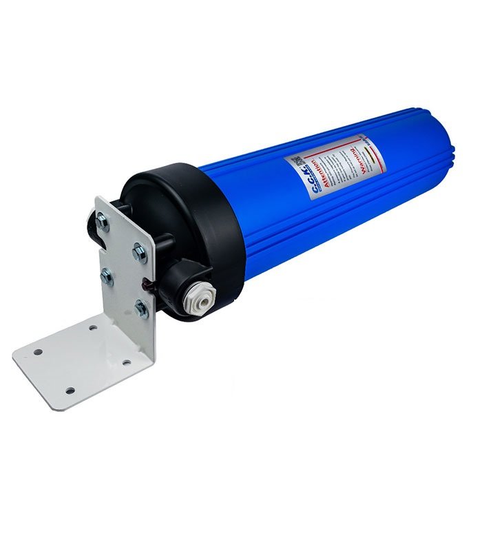 Διαθέτει μία φιλτροθήκη Big Blue 20″ με θηλυκά σπειρώματα 1″ στην κεφαλή και κουμπί απελευθέρωσης της πίεσης.